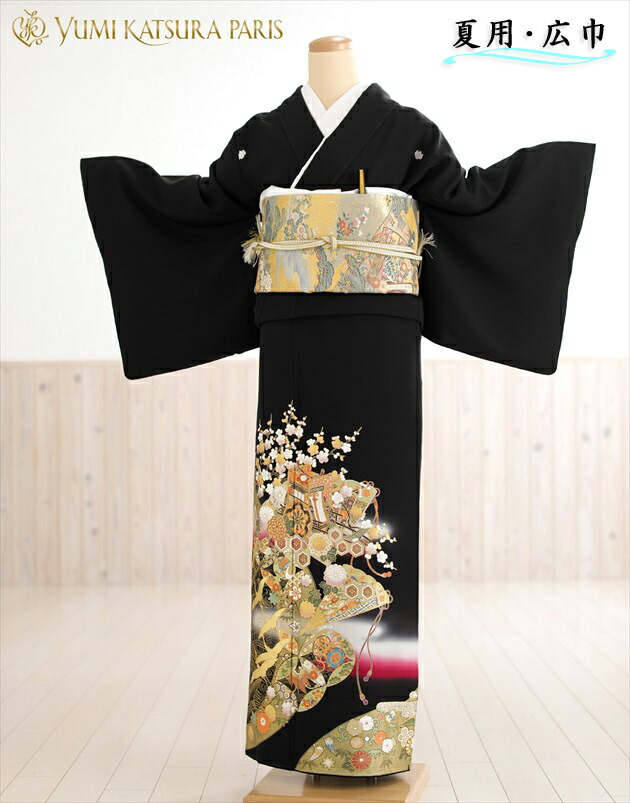 売上実績no 1 夏用単衣大きいサイズ桂由美留袖レンタルsth718 結婚式幅広広巾黒留袖レンタル13号 19号母親親族 16点フルセット 留袖留め袖着物レンタル正絹貸衣装親族チャペル