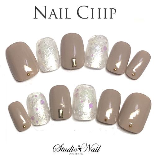 ジェルコーティング付き ネイルチップ ショート ちびつけ爪 短い ベージュブラウン ホログラム スタッズ スノーデザイン 12枚入り O1105 Order スタジオネイル 通販 Yahoo ショッピング